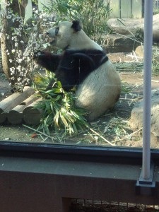 珍しく桜と戯れるパンダのショットに入園料の600円回収のパンダかぶりつき。